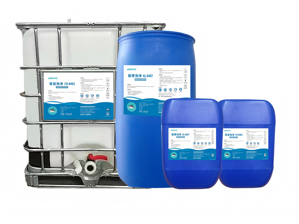 泡沫特性:能产生绵密、附着性强的泡沫,些泡沫就像“立体清洁网”,喷洒后可牢牢吸附在设备表面,不会快速流失,延长与污垢的接触时间;同时又能深入设备缝隙、管道内壁、模具纹路等常规清洁难以触及的角落,实现“无死角包裹”。