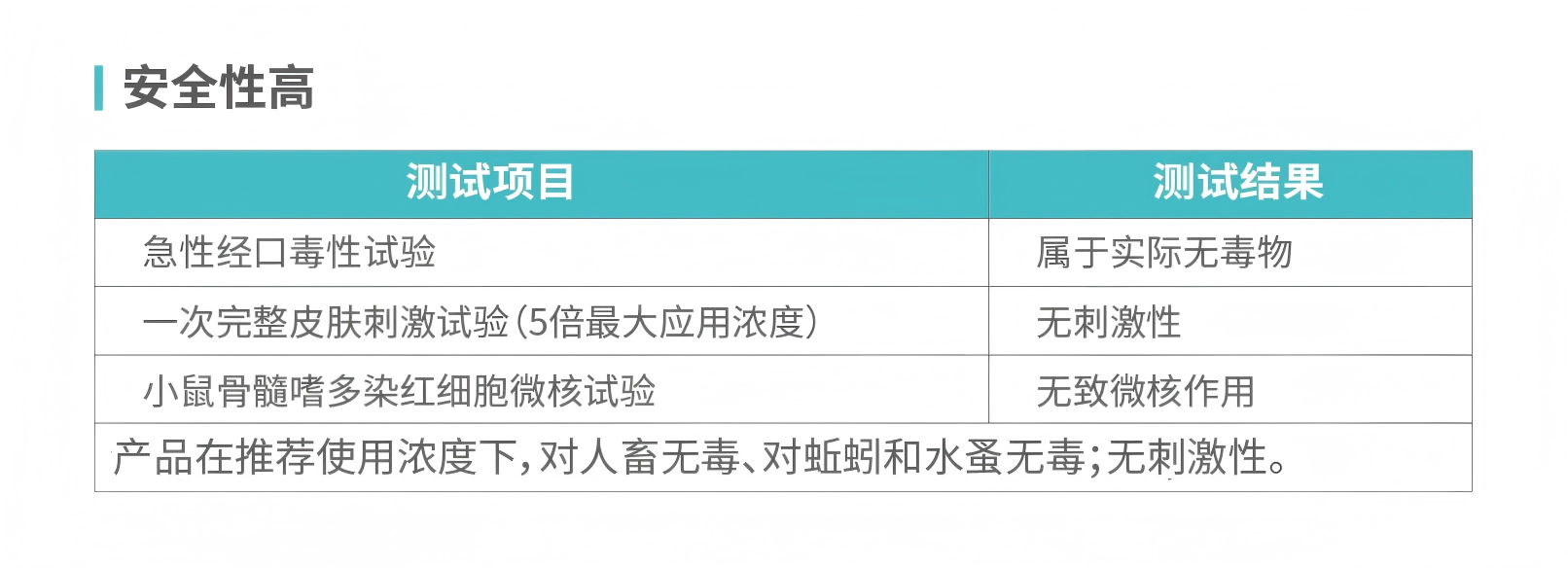规模化养殖场中,孕畜、幼畜占比高,消毒产品的安全性直接关系到畜禽存活率。过硫酸氢钾消毒粉通过了严格的安全性评估,被认定为“实际无毒级”产品——急性经口毒性试验无异常,皮肤接触无刺激、无致敏反应,即便用于孕畜舍、幼畜保育栏消毒,也无需临时转移畜禽。