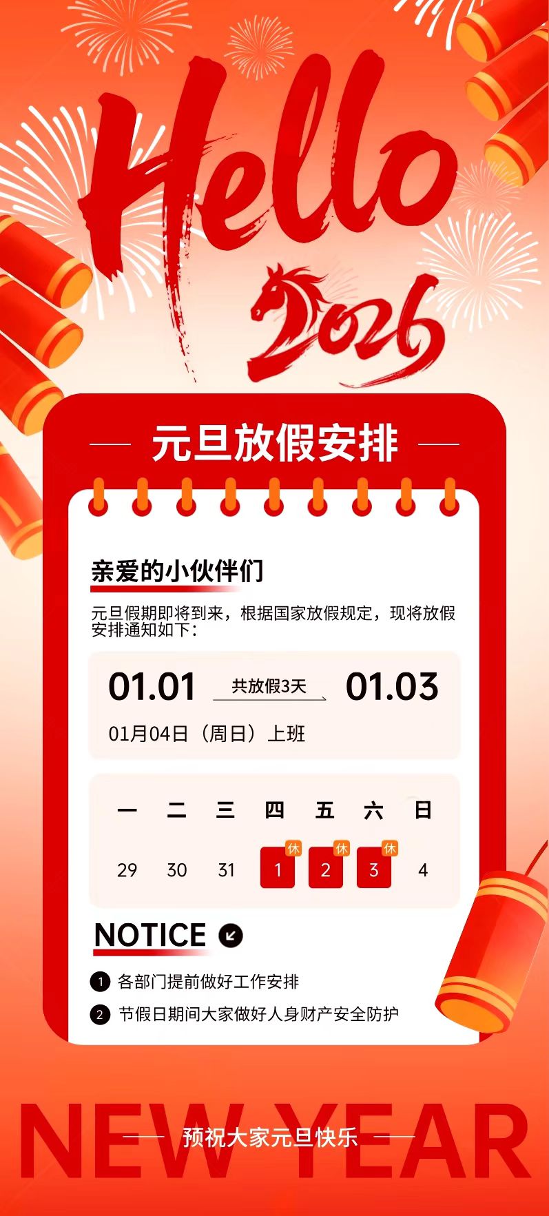 2026年元旦放假通知 📢