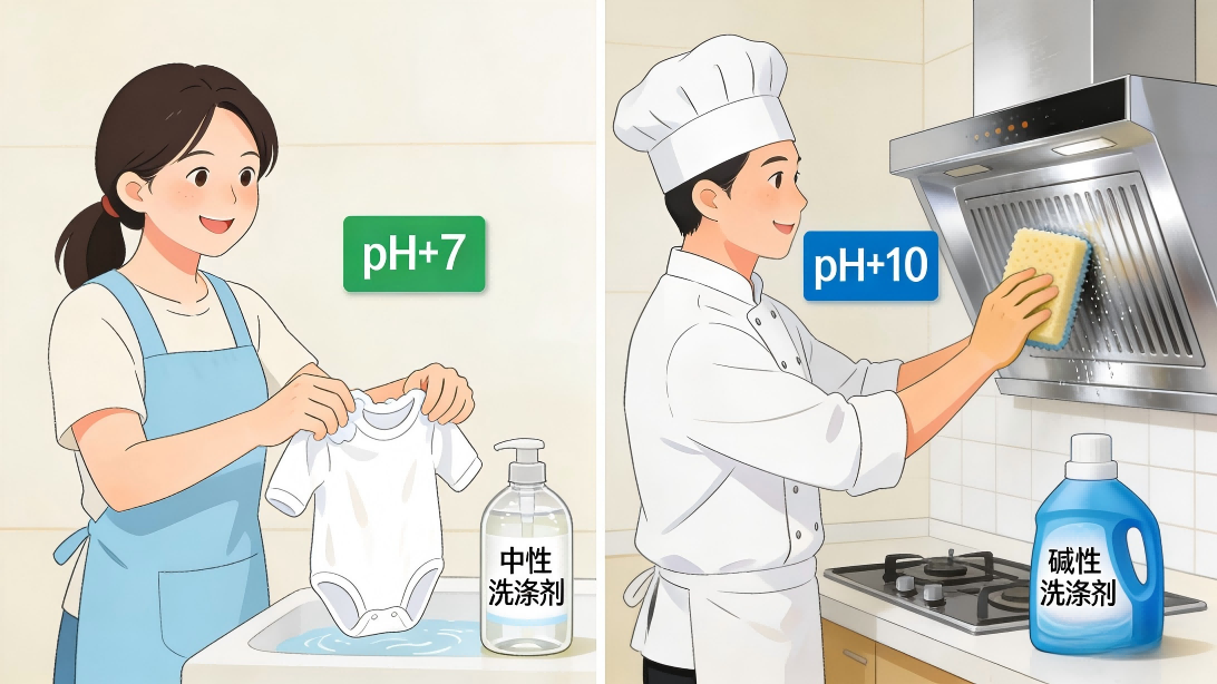 清洁力≠好用,匹配场景才重要!贴身衣物选中性,厨房重油污选碱性,卫生间除垢选酸性。选对pH值,既能洗得干净,又能保护面料、呵护皮肤,还能延长家居用品的使用寿命。